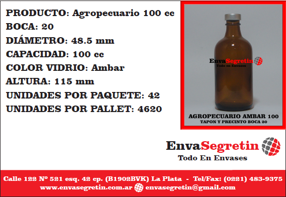 /    /  Frasco Vidrio, Medicinal  /  Agropecuario 100cc