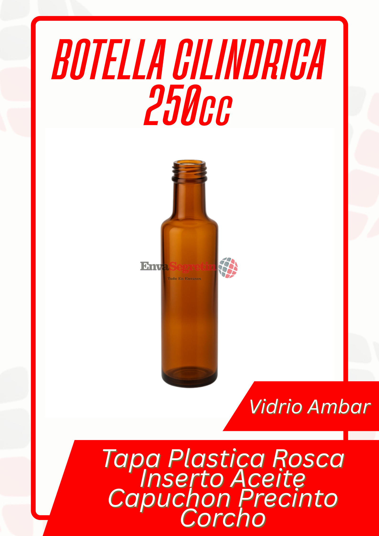 /    /  Botellas Vidrio  /  Botella Cilindrica Ambar 250cc