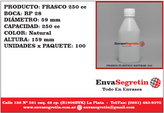 /    /  Frascos Plasticos Comun, Plasticos  /  Frasco Plastico Natural 250cc